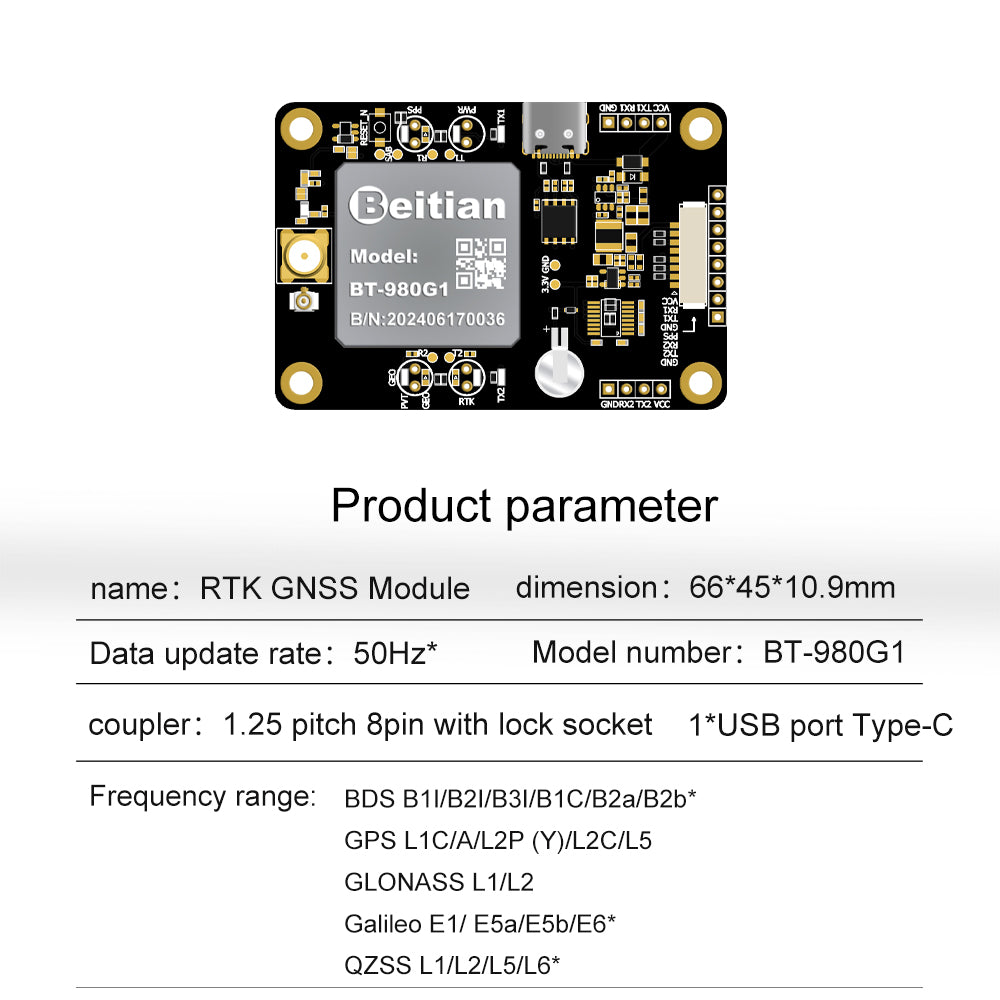 - Beitian module RTK high-precision Beidou GPS differential four-star full-frequency GNSS board Beitian module RTK high-precision Beidou GPS differential four-star full-frequency GNSS board