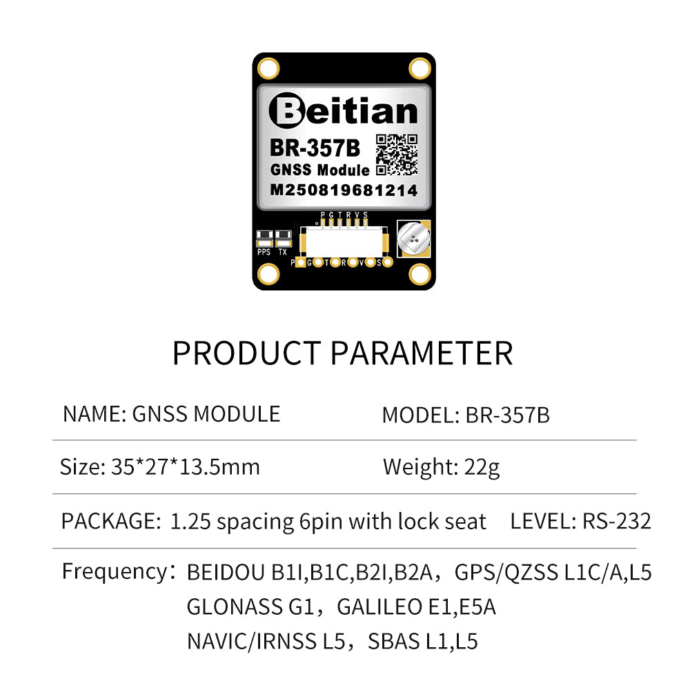 - Beitian BR-280 dual-frequency multi-mode single Beidou GPS sub-meter GNSS positioning module with compass Beitian BR-280 dual-frequency multi-mode single Beidou GPS sub-meter GNSS positioning module with compass