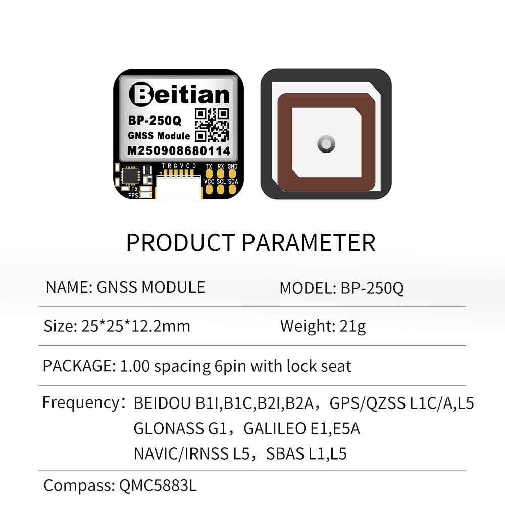 - Beitian GNSS module with compass RTK differential high-precision single Beidou GPS sub-meter positioning BP-250Q Beitian GNSS module with compass RTK differential high-precision single Beidou GPS sub-meter positioning BP-250Q
